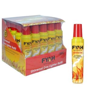 Introducing the FYAH 18ml Universal Gas Lighter Butane Refill, your solution to keeping your lighters topped up and ready to go. Designed for convenience and reliability, this refill bottle ensures you never run out of fuel for your favorite lighters. Whether it’s for candles, grills, fireplaces, or any other application, this universal butane refill is compatible with a wide range of lighters. With its compact size, it’s perfect for storing in your kitchen drawer or toolbox, ensuring you’re always prepared.